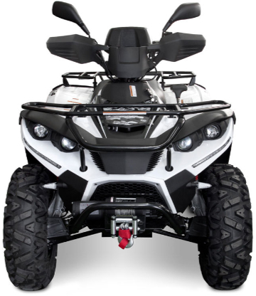 | Wyposażenie | Przełączany napęd 4x4, masywny przedni bumper, solidny przedni i tylny bagażnik, aluminiowe felgi z oponami Sun-F, elektryczna wyciągarka z siłą uciągu 3000lbs z pilotem, hak holowniczy, osłony dłoni, światła LED do jazdy dziennej, podwójne projekcyjne reflektory, światła tylne/stop/awaryjne w technologii LED, sygnał dźwiękowy włączonych kierunkowskazów |