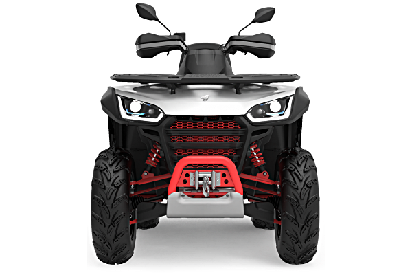 | Wyposażenie | elektryczne wspomaganie kierownicy, elektryczna wyciągarka, siedzisko z oparciem, hak holowniczy, kompozytowe bagażniki z przodu i z tyłu, cyfrowy wielofunkcyjny wyświetlacz, oświetlenie Full-LED, przedni i tylny ochronny bumper, wzmocnienia ochraniające boki, 14" felgi aluminiowe z systemem Beadlock, 26" opony, w pełni regulowane amortyzatory z progresywnymi sprężynami, osłony dłoni, Smart Commanding System (SCS) + aplikacja mobilna Smart-Moving App. |