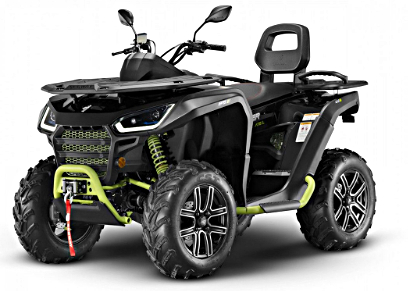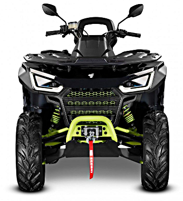 | Wyposażenie | elektryczne wspomaganie kierownicy, elektryczna wyciągarka, siedzisko z oparciem, hak holowniczy, kompozytowe bagażniki z przodu i z tyłu, cyfrowy wielofunkcyjny wyświetlacz, oświetlenie Full-LED, przedni i tylny ochronny bumper, wzmocnienia ochraniające boki, 14" felgi aluminiowe, regulowane amortyzatory z progresywnymi sprężynami, osłony dłoni |