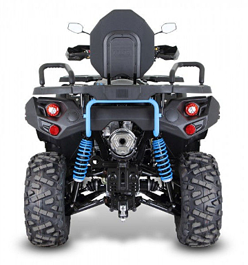 | Wyposażenie | Homologowany hak holowniczy, elektryczna blokada przedniego dyferencjału, wspomaganie kierownicy, elektrycznie przełączany napęd 2x4 / 4x4, opancerzone przewody hamulcowe, atrakcyjne 8-ramiene felgi aluminiowe, 25" opony, osłony dłoni na kierownicy, mocny zderzak z przodu, przedni i tylny bagażnik, siedzisko z oparciem i uchwytami dla pasażera, wyciągarka 3000 lbs, 12V gniazdo zasilające 10A 120W, oświetlenie Full LED |