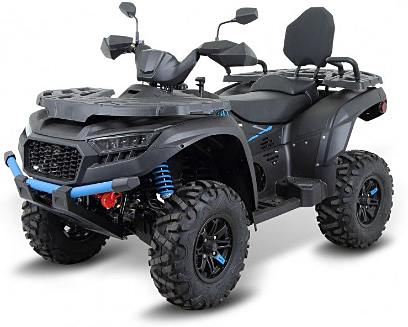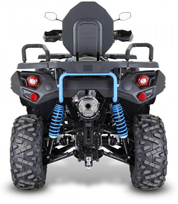 | Wyposażenie | Homologowany hak holowniczy, elektryczna blokada przedniego dyferencjału, wspomaganie kierownicy, elektrycznie przełączany napęd 2x4 / 4x4, opancerzone przewody hamulcowe, atrakcyjne 8-ramiene felgi aluminiowe, 25" opony, osłony dłoni na kierownicy, mocny zderzak z przodu, przedni i tylny bagażnik, siedzisko z oparciem i uchwytami dla pasażera, wyciągarka 3000 lbs, 12V gniazdo zasilające 10A 120W, oświetlenie Full LED |