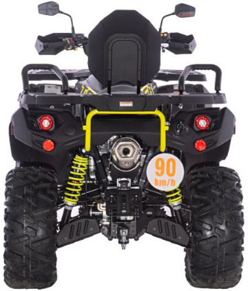 | Wyposażenie | Homologowany hak holowniczy, elektrycznie przełączany napęd 2x4/4x4 z blokadą przedniego i tylnego dyferencjału, amortyzaory EVO, przewody hamulcowe w oplocie, 8-ramienne felgi aluminiowe, markowe opony Maxxis Bighorn, osłony dłoni na kierownicy, mocny przedni bumper, przedni i tylny bagażnik, dodatkowe tylne siedzisko z uchwytami, wyciągarka 3000 lbs, 12V gniazdo zasilające 10A 120W, dzienne światła Full-LED, światła tylne oraz kierunkowskazy LED |