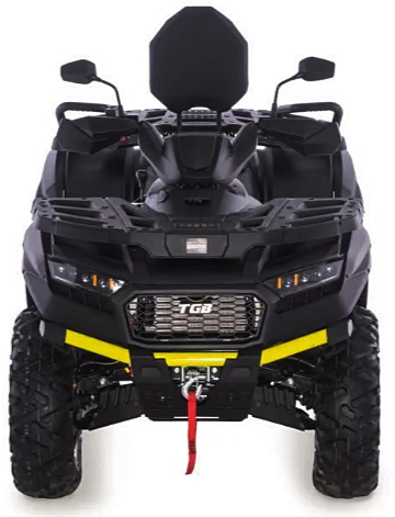 Wśród dodatkowego wyposażenia quada TGB Blade 1000i LTX EPS 14'' T3 Premium Pro znajdują się osłona podwozia, dodatkowe oświetlenie LED z przodu i z tyłu, grzane manetki i kciuk SYMTEC, podgrzewane siedzenie kierowcy i pasażera, dodatkowy zderzak z tyłu, gaśnica z uchwytami oraz kanister 5L SHARK. Jedną z zalet quada TGB Blade 1000i LTX EPS 14'' Premium Pro jest jego nieprzeciętny system napędowy z mechanizm różnicowy na przedniej i tylej osi z możliwością elektrycznej blokady. Dzięki niemu quad TGB Blade 1000i LTX EPS 14'' T3 Premium Pro cieszy się doskonałą przyczepnością do podłoża wszystkich kół i zwiększoną kontrolą nad quadem. Quad TGB Blade 1000i LTX EPS 14'' Premium Pro napędzany jest przez solidny czterosuwowy, dwucylindrowy, 1000 cm3 silnik V-Twin o mocy 83 KM i z elektronicznym wtryskiem paliwa (EFI odpowiada za sprawne spalanie oraz bezproblemowy rozruch silnika w upały i chłodne dni). Quad TGB Blade 1000i LTX EPS 14'' Premium Pro wyposażony został także w Elektryczne Wspomaganie Kierownicy (EPS) z trzema trybami min, max i off, co zapewnia Ci dużo większą kontrolę nad pojazdem ATV i zmniejsza odczucie wstrząsów kierownicy. Pokonanie trudnego terenu usprawnia napęd 2x4 przełączany na napęd 4x4, niezależne zawieszenie wszystkich kół, amortyzatory EVO z regulacją napięcia wstępnego sprężyny i duży prześwit. Quad TGB Blade 1000i LTX EPS 14'' Premium Pro cechuje przedłużone podwozie gwarantujące dużą ilość miejsca dla kierowcy i pasażera, tym samym zwiększając ich wygodę. Szybki dostęp do chłodnicy i jej łatwe czyszczenie umożliwia łatwo demontowalny grill. Automatyczna skrzynia biegów wykonana z japońskich komponentach pozwala na jeszcze lepszą obsługę quada TGB Blade 1000i LTX EPS 14'' Premium Pro i łatwiejsze pokonywanie ciężkiego terenu.